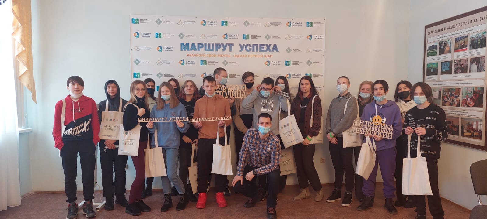 Проект «Маршрут успеха» включает в себя комплекс туристско-образовательных маршрутов для школьников 9-11 классов, разнообразных по своей тематике и содержанию, отвечающих потребностям призванных познакомить их с ведущими профессиональными образовательными организациями, предприятиями, а также культурными достопримечательностями города Уфы и традициями Башкортостана.