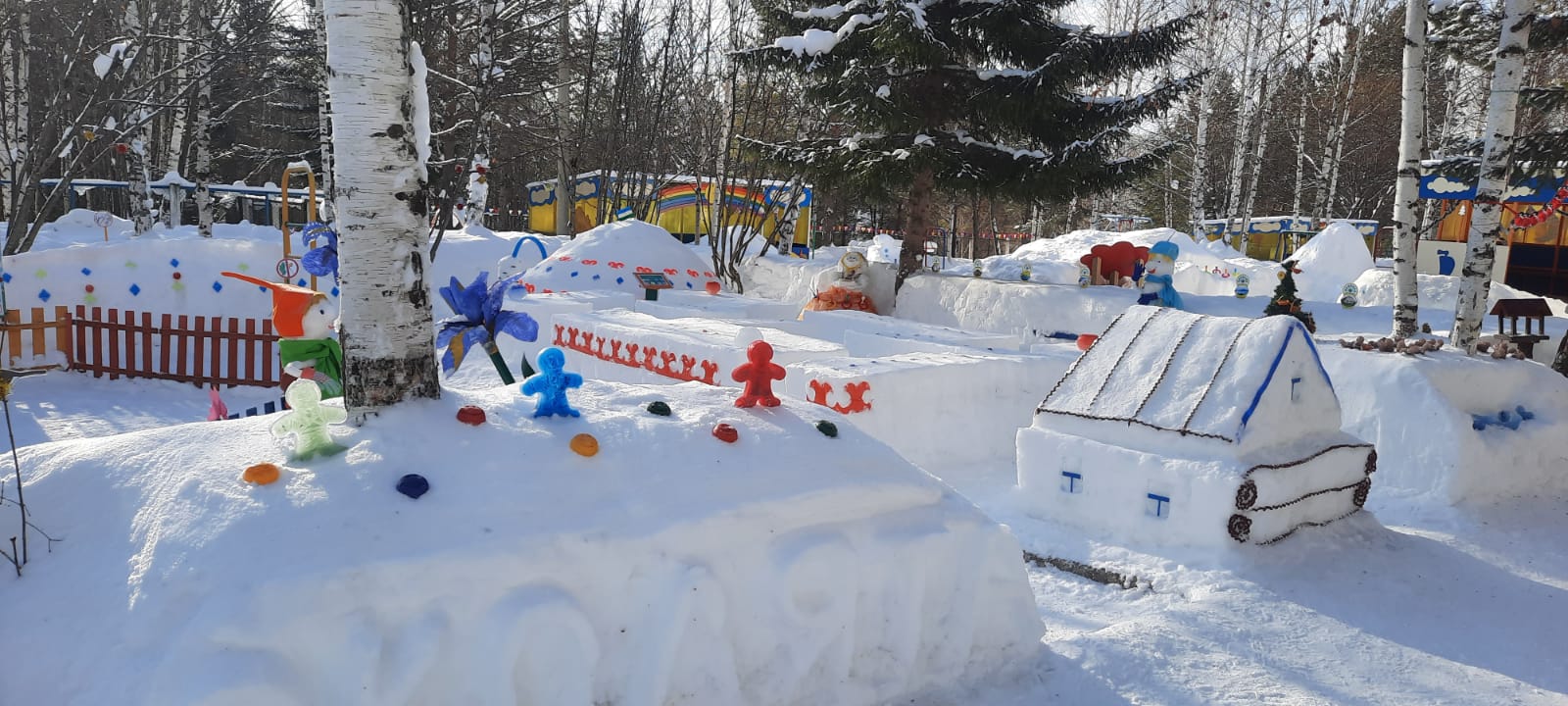 В настоящее время в МАДОУ ЦРР д/с № 4 ЗАТО Межгорье Республики Башкортостан реализуется долгосрочный проект «Семь чудес Башкортостана». Свой снежный городок они оформили с учетом регионального компонента и назвали его «Знакомство Эколят с чудесами Башкортостана». В снежных постройках постарались передать колорит башкирского орнамента, создали героев башкирского эпоса. Каждая постройка не только отображала достопримечательности Башкортостана, но и несла в себе многофункциональность для познавательной и двигательной деятельности детей. Пожелаем творческому коллективу новых побед во всестороннем развитии детей!
