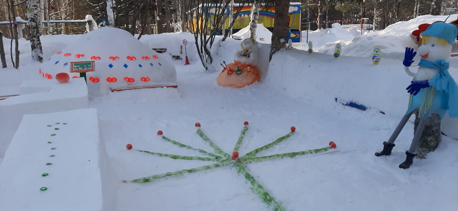 Дошкольные учреждения творчески подошли к реализации конкурсных заданий, создали оптимальные условия для организации жизнедеятельности детей на прогулочных участках в зимнее время, развития творчества, инициативы и социальной активности педагогов, детей и родителей. Педагоги и родители воспитанников показали мастерство и проявили художественно-эстетический вкус. Благодаря совместной работе педагогов, детей и родителей на игровых площадках детских садов разместились веселые сказочные герои «Эколята» - друзья и защитники природы, сделанные из снега, а также игровые элементы, различные снежные конструкции, горки, фигуры. Снежный городок «Эколят» (далее Конкурс) стал любимым местом увлекательного времяпровождения детей. Прогулки на зимних участках дарят нашим детям радость, здоровье и незабываемые впечатления от встречи со сказочными персонажами из снега.