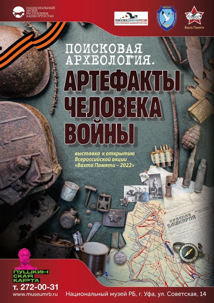В целях успешной реализации Федерального проекта «Патриотическое воспитание граждан Российской Федерации» и регионального проекта «Успех каждого ребенка» 15 апреля 2022 года юнармейцы ЗАТО Межгорье Республики Башкортостан присутствовали на открытии выставки в Национальном музее Республики Башкортостан по теме: «Поисковая археология. Артефакты человека войны», приуроченной к празднованию Всероссийской Вахты Памяти 2022.