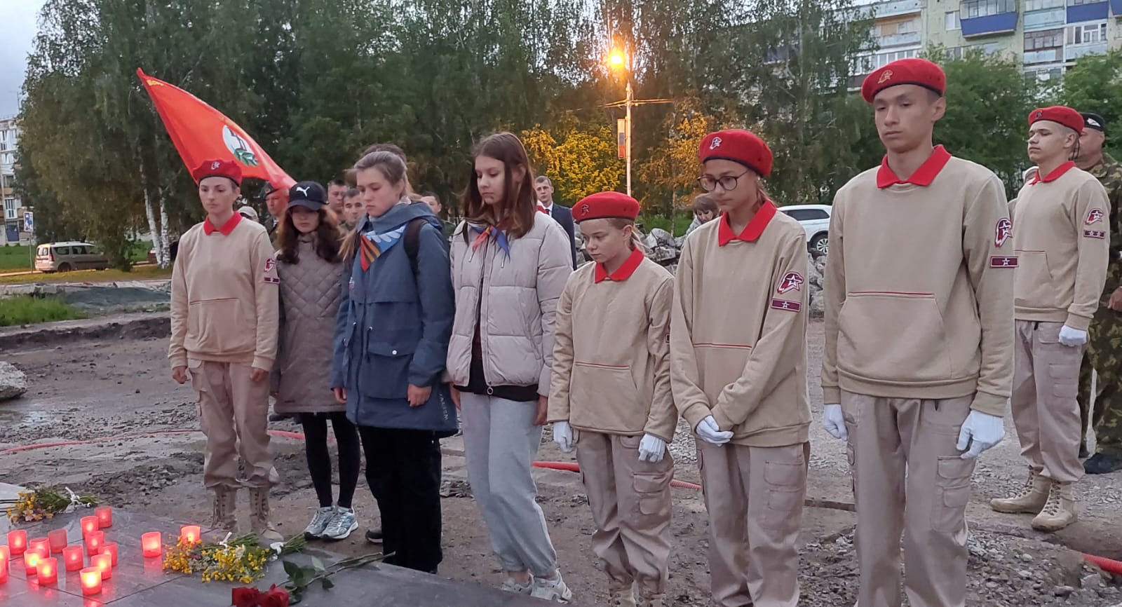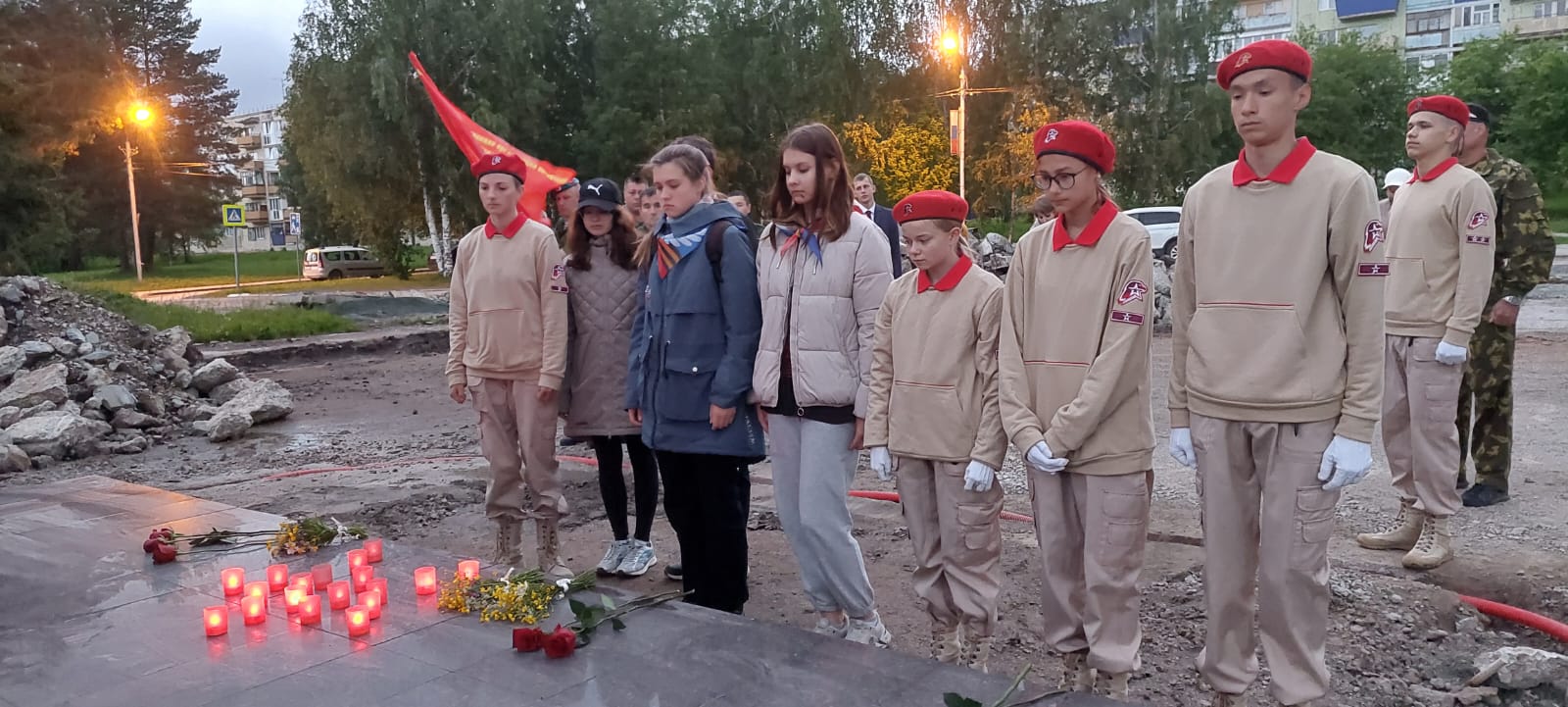 В 4:00 утра юнармейцы города, учащиеся объединения «СТЭМ» МБУДО «Центр внешкольной работы» ЗАТО Межгорье Республики Башкортостан и участники Межгорьевского отделения Всероссийской общественной организации ветеранов «Боевое братство» собрались у Стелы Славы, чтобы почтить память солдат и мирных жителей, отдавших свои жизни в борьбе с фашизмом.
