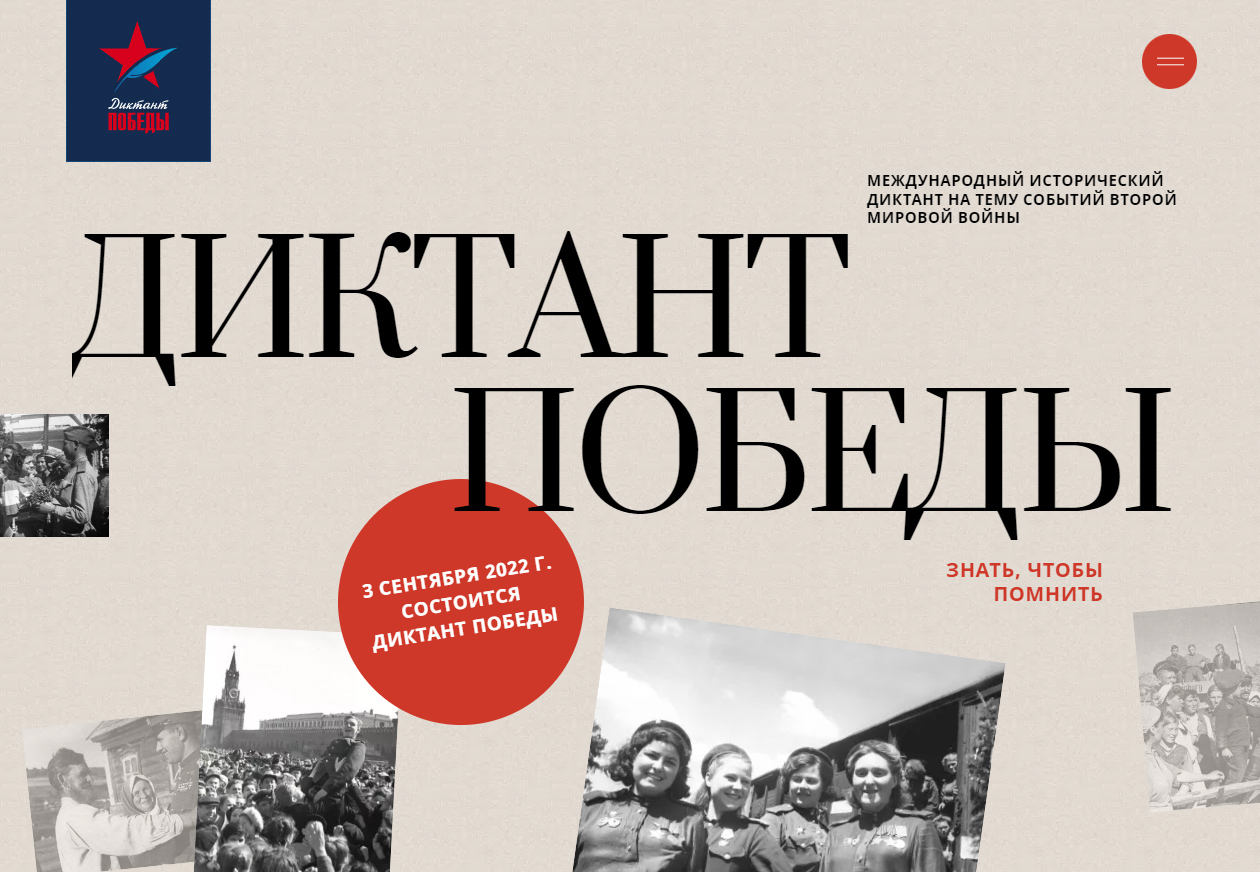 3 сентября 2022 года в 16 часов по межгорьевскому времени состоится традиционная Всероссийская акция «Диктант Победы – 2022».
